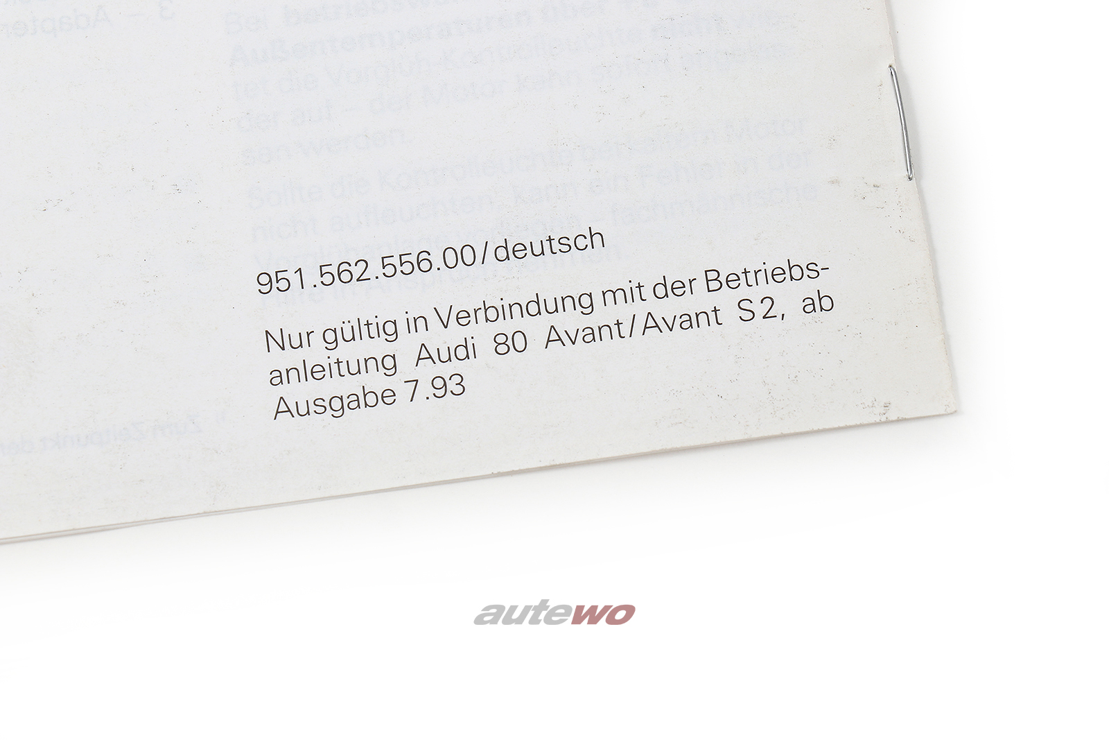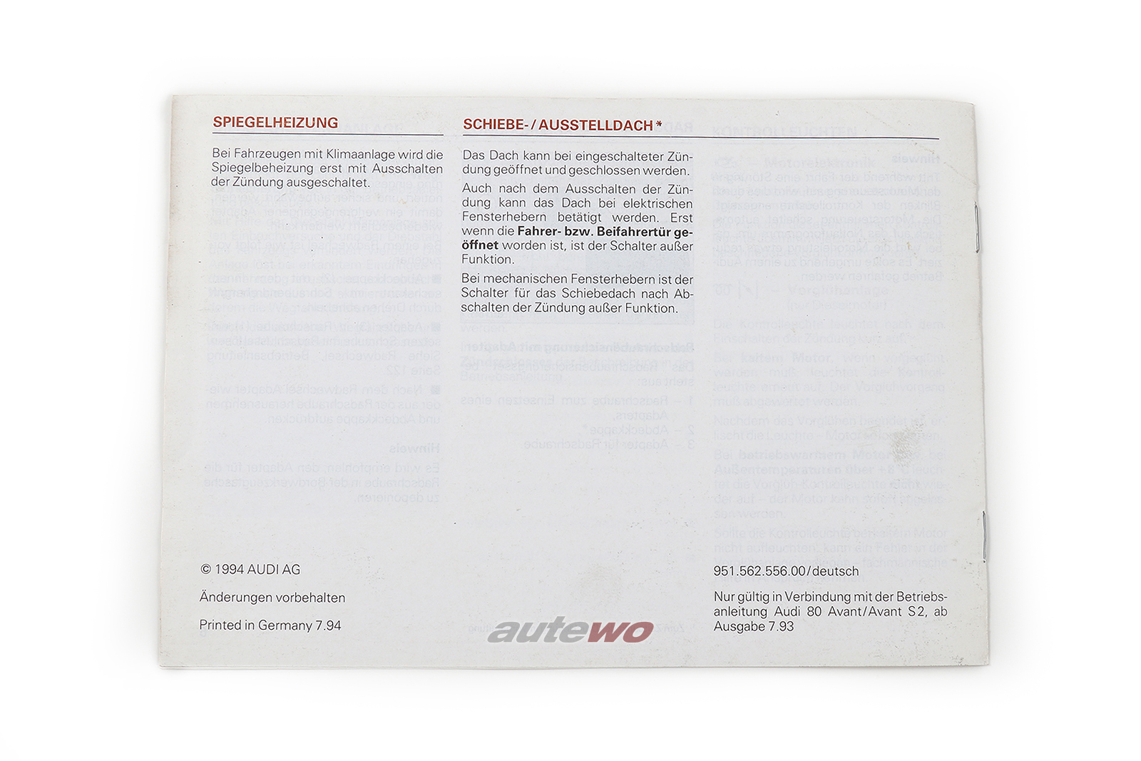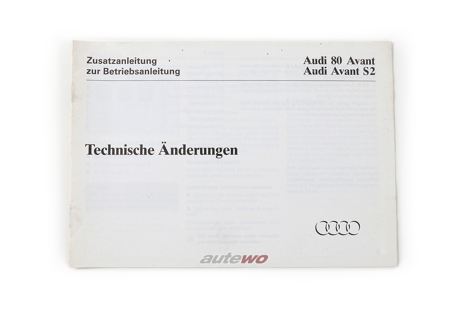 Audi 80 B4/S2 Avant Zusatzanleitung, technische Änderungen, Ausgabe 7.93