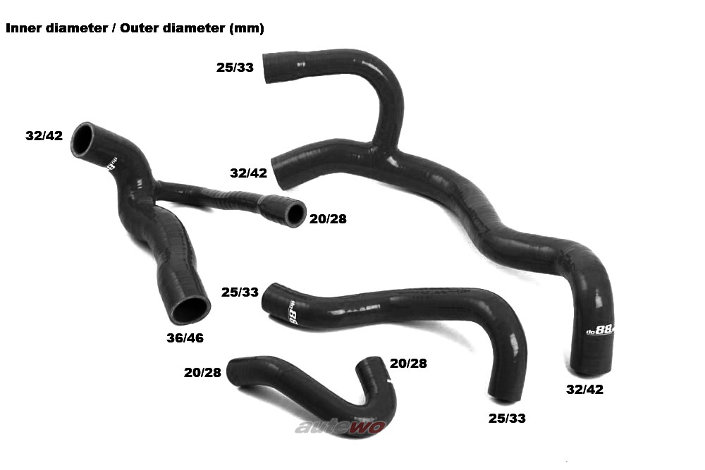 Audi S2/RS2 B4 2.2l 20V Turbo ABY/ADU Silikon-Kühlwasserschlauchset