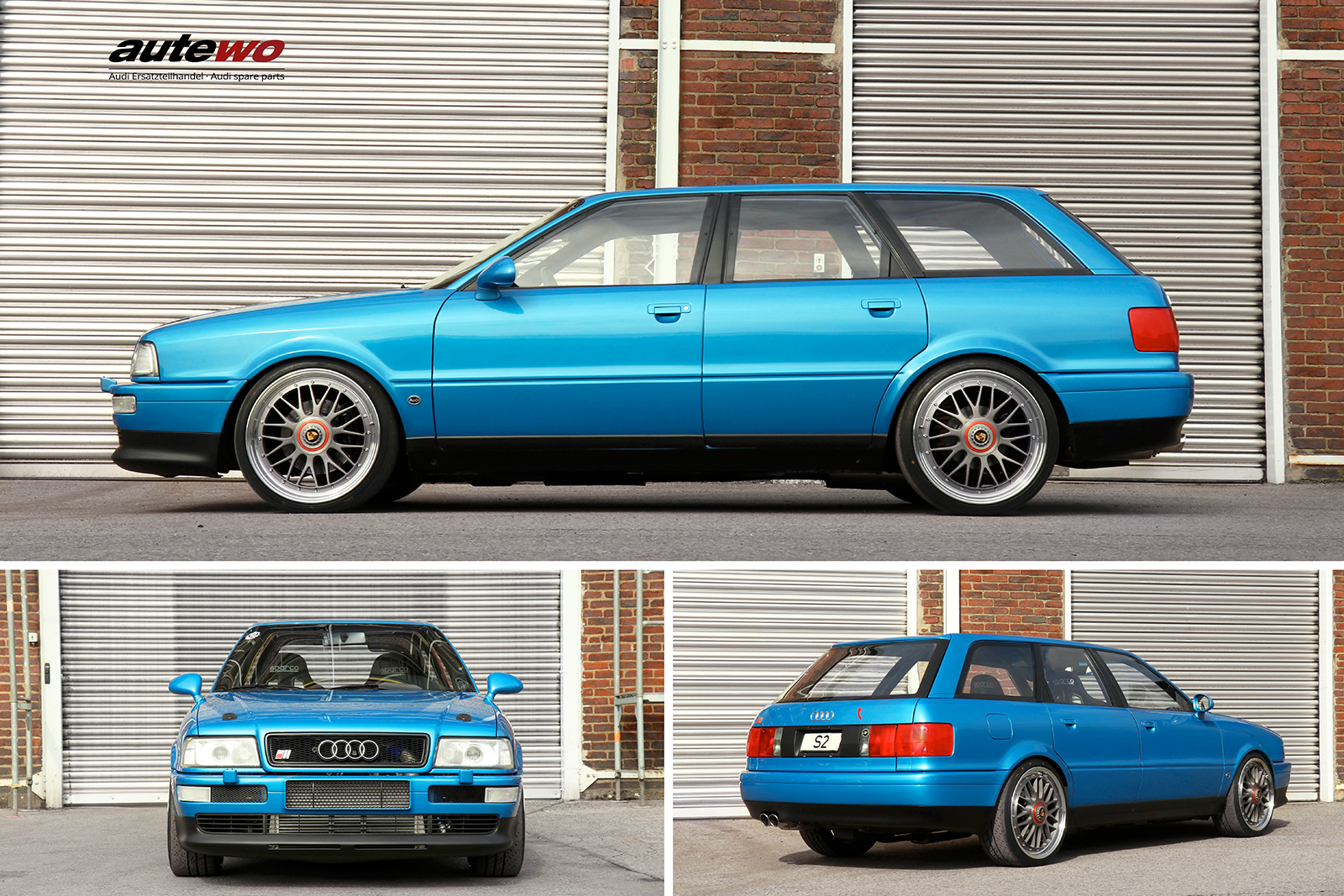 autewo-Poster DIN A2 mit dem bekannten 2.2l 5 Zylinder 20V Turbo 1/4 Meile Audi S2 Avant von Maik Harder in pelikanblau - 9,3 Sekunden mit "garantiert 315PS"