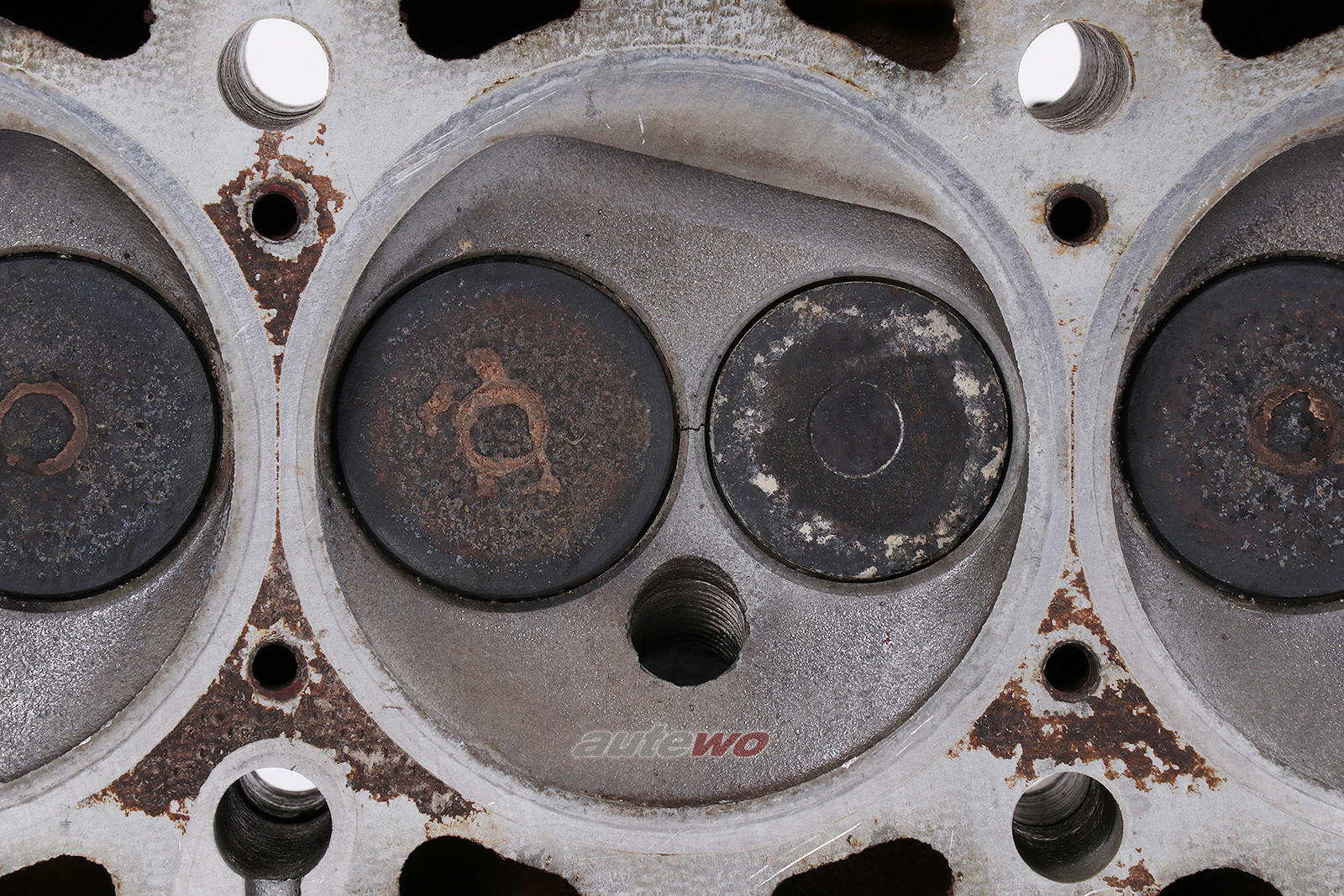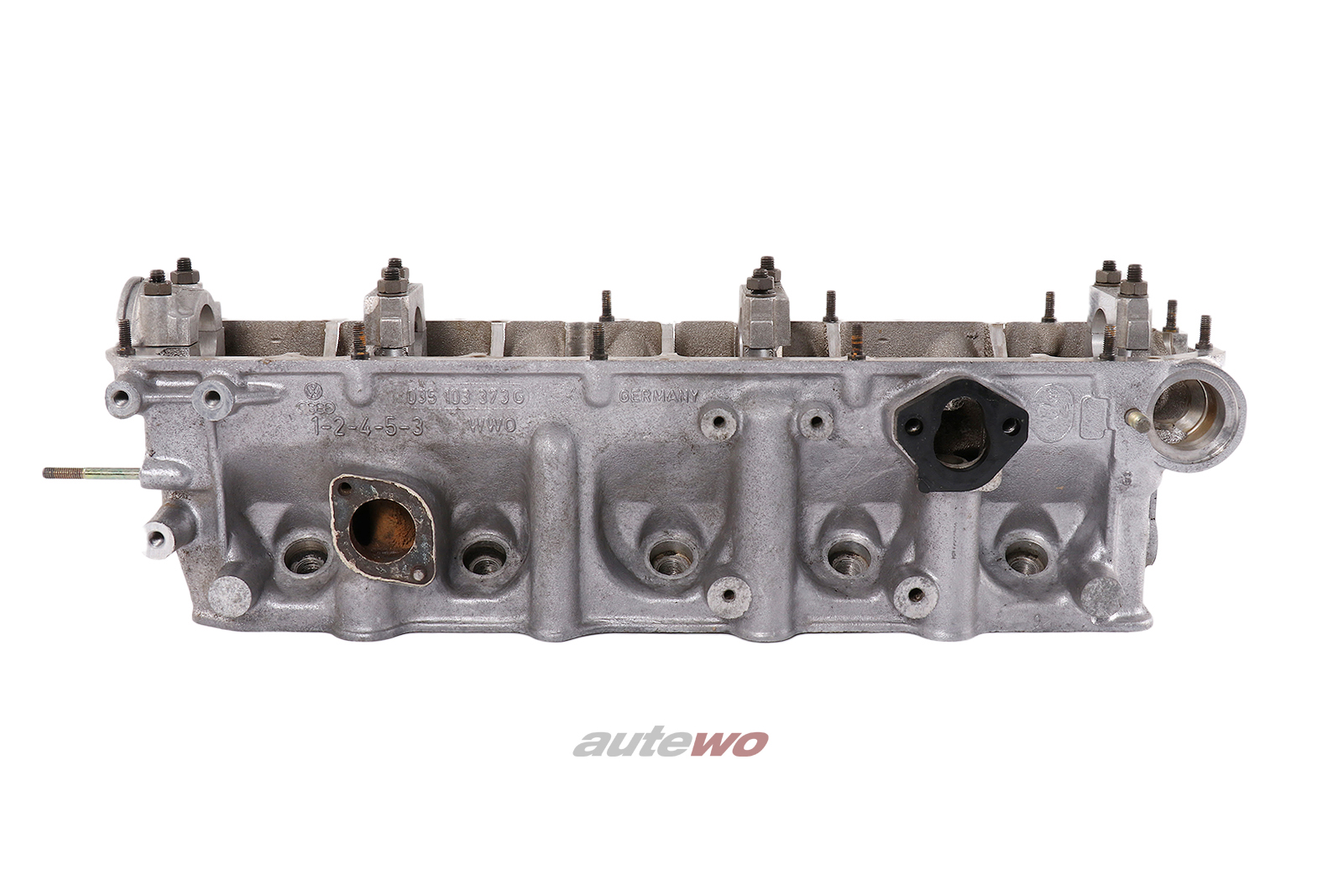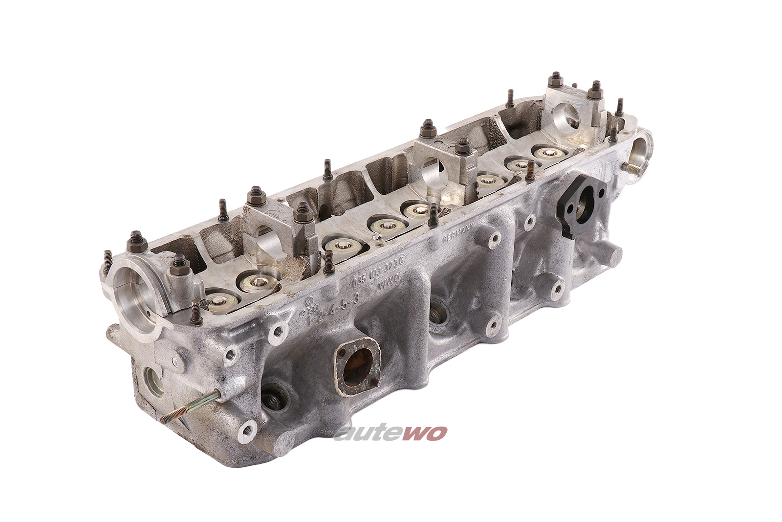 gebraucht mit typischen altersbedingten Gebrauchsspuren in Form von Verunreinigungen, minimalen Kratzern und Macken, geprüft, ein Stehbolzen am Zylinderkopf abgerissen, Stehbolzen am Wasserflansch abgebrochen, Risse zwischen den Ventilen, muss überholt werden.