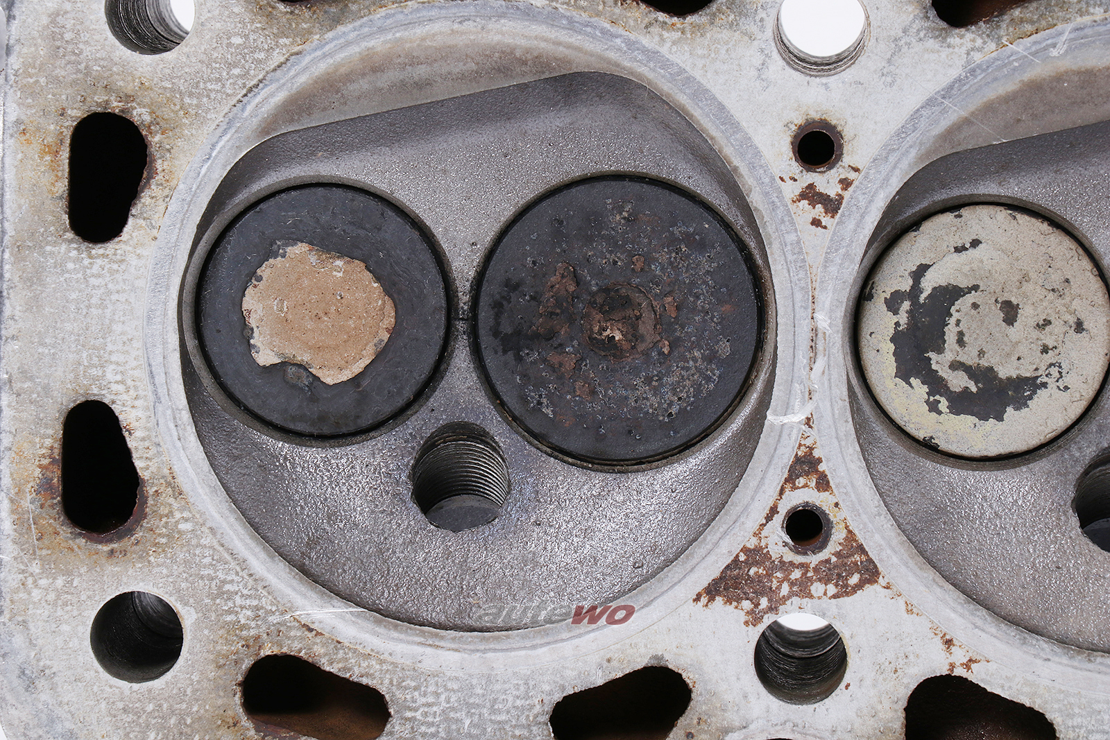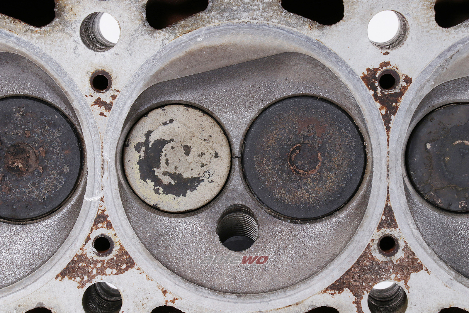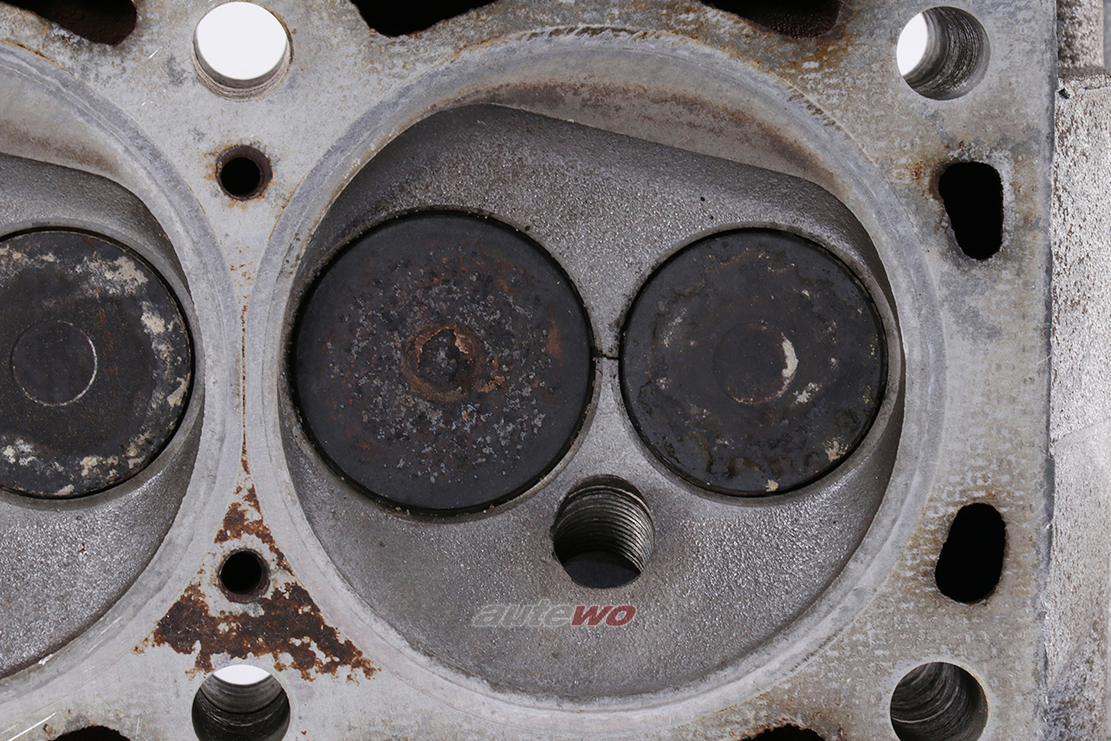 gebraucht mit typischen altersbedingten Gebrauchsspuren in Form von Verunreinigungen, minimalen Kratzern und Macken, geprüft, ein Stehbolzen am Zylinderkopf abgerissen, Stehbolzen am Wasserflansch abgebrochen, Risse zwischen den Ventilen, muss überholt werden.