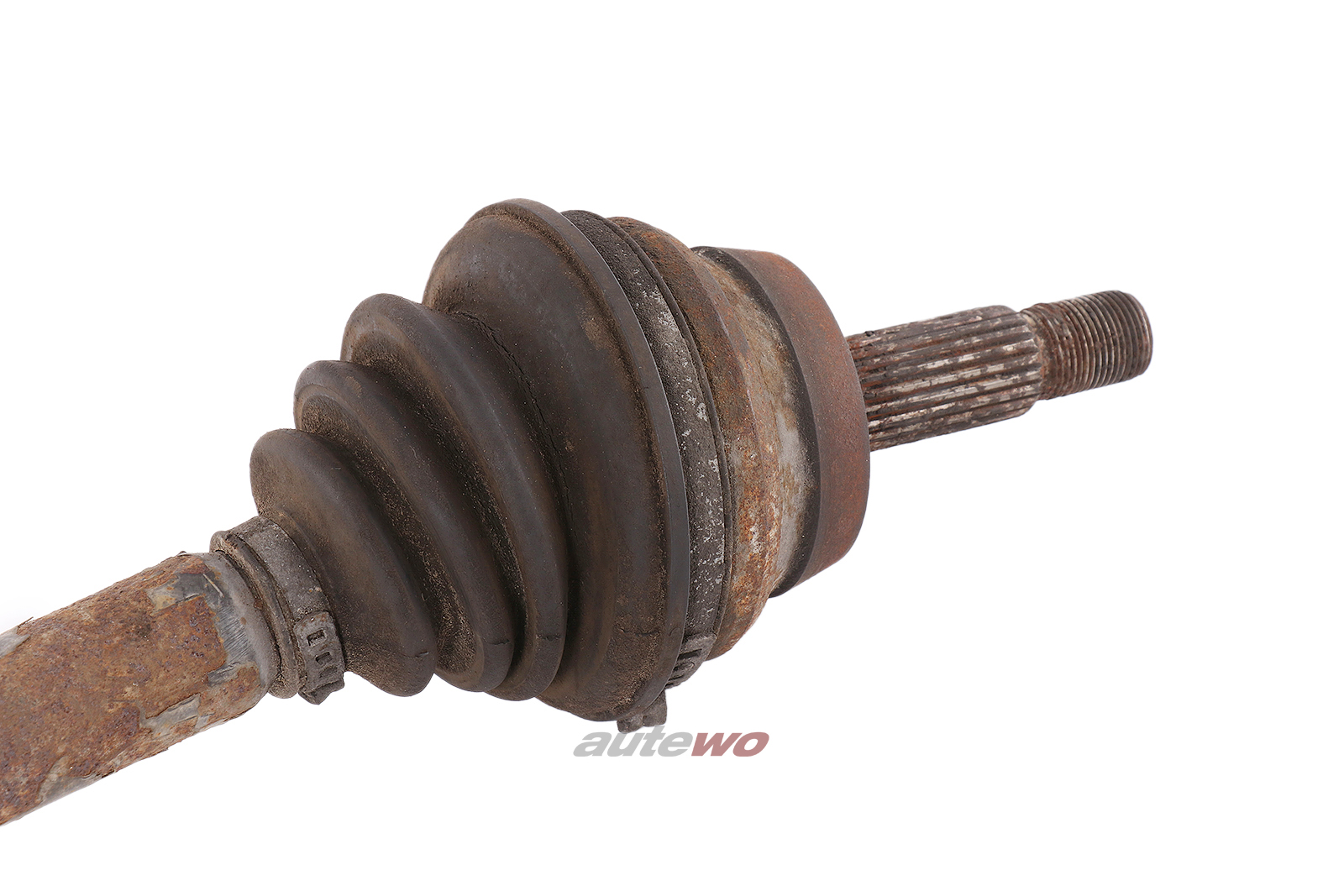 gebraucht mit typischen Gebrauchsspuren in Form von Flugrost/Verunreinigungen/Abnutzungsspuren, geprüft, Außengelenk hat leichtes Spiel, Manschette muss erneuert werden.