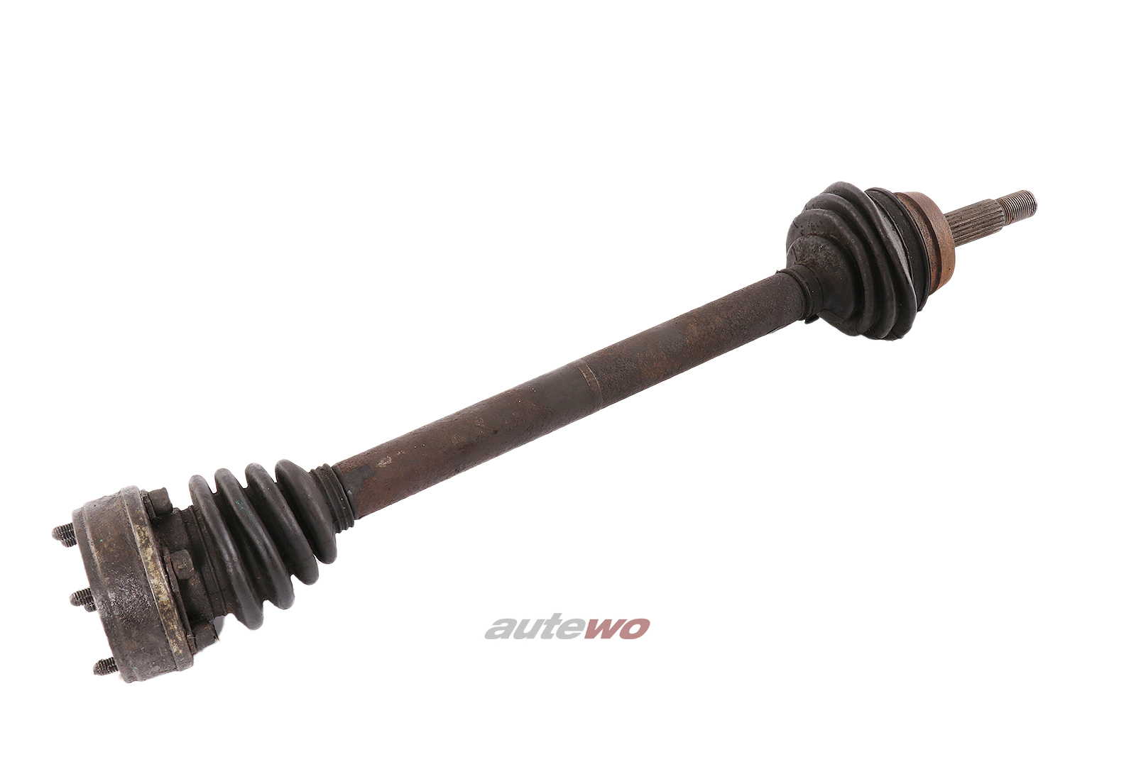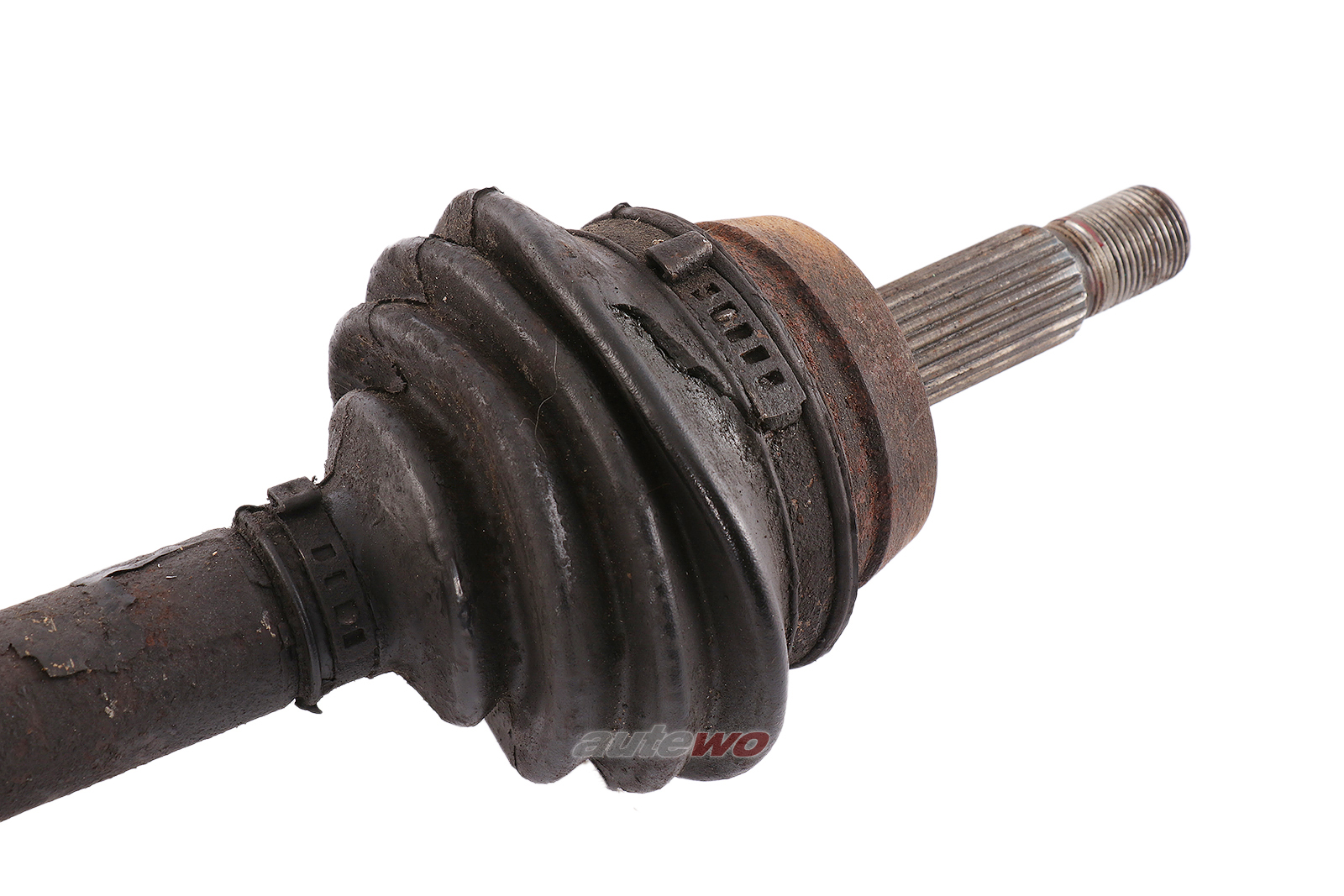 gebraucht mit typischen Gebrauchsspuren in Form von Flugrost/Verunreinigungen/Abnutzungsspuren, geprüft, Außengelenk hat leichtes Spiel, Manschette muss erneuert werden.