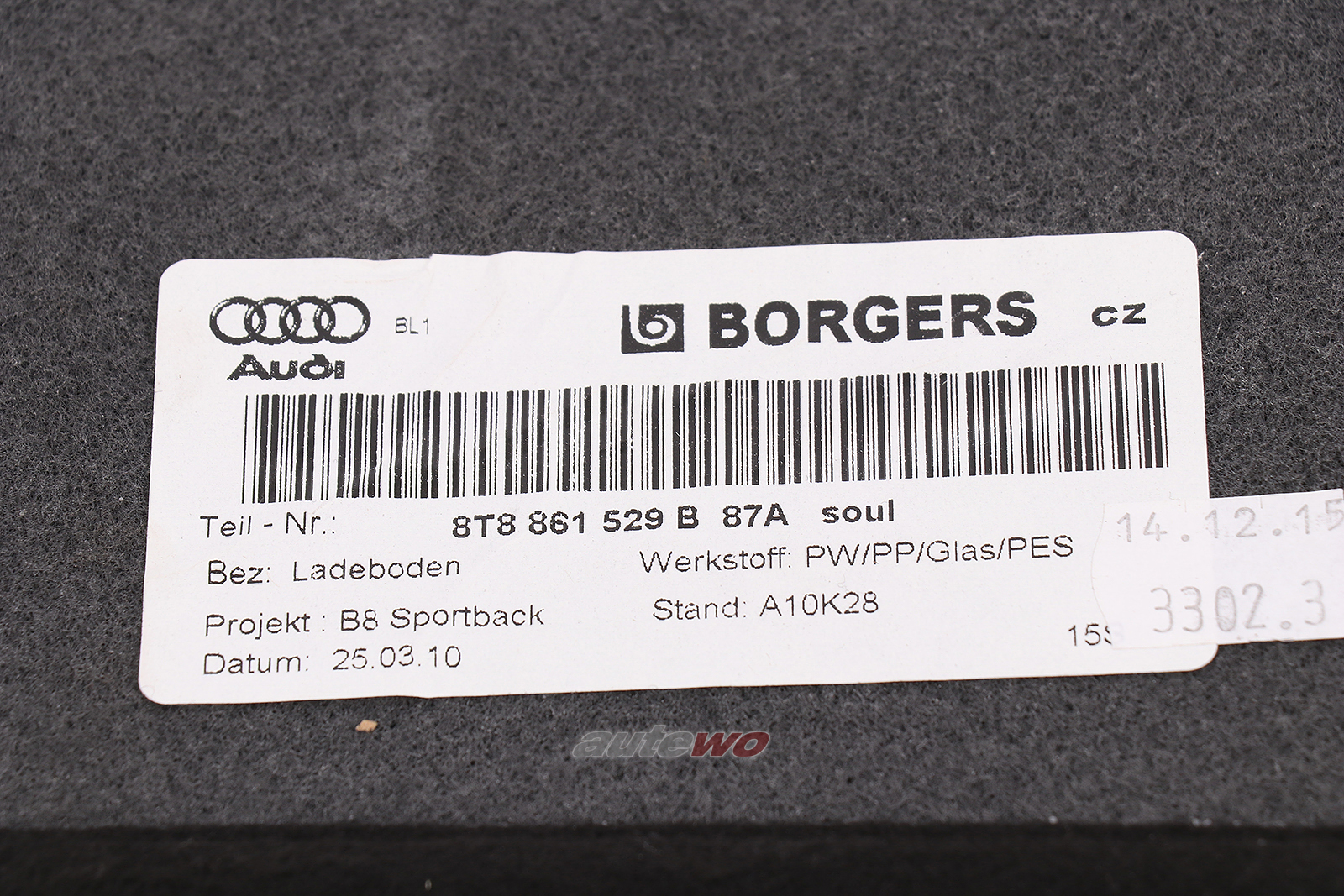 8T8861529B Audi A5/S5 8T Sportback Kofferraum Teppich schwarz