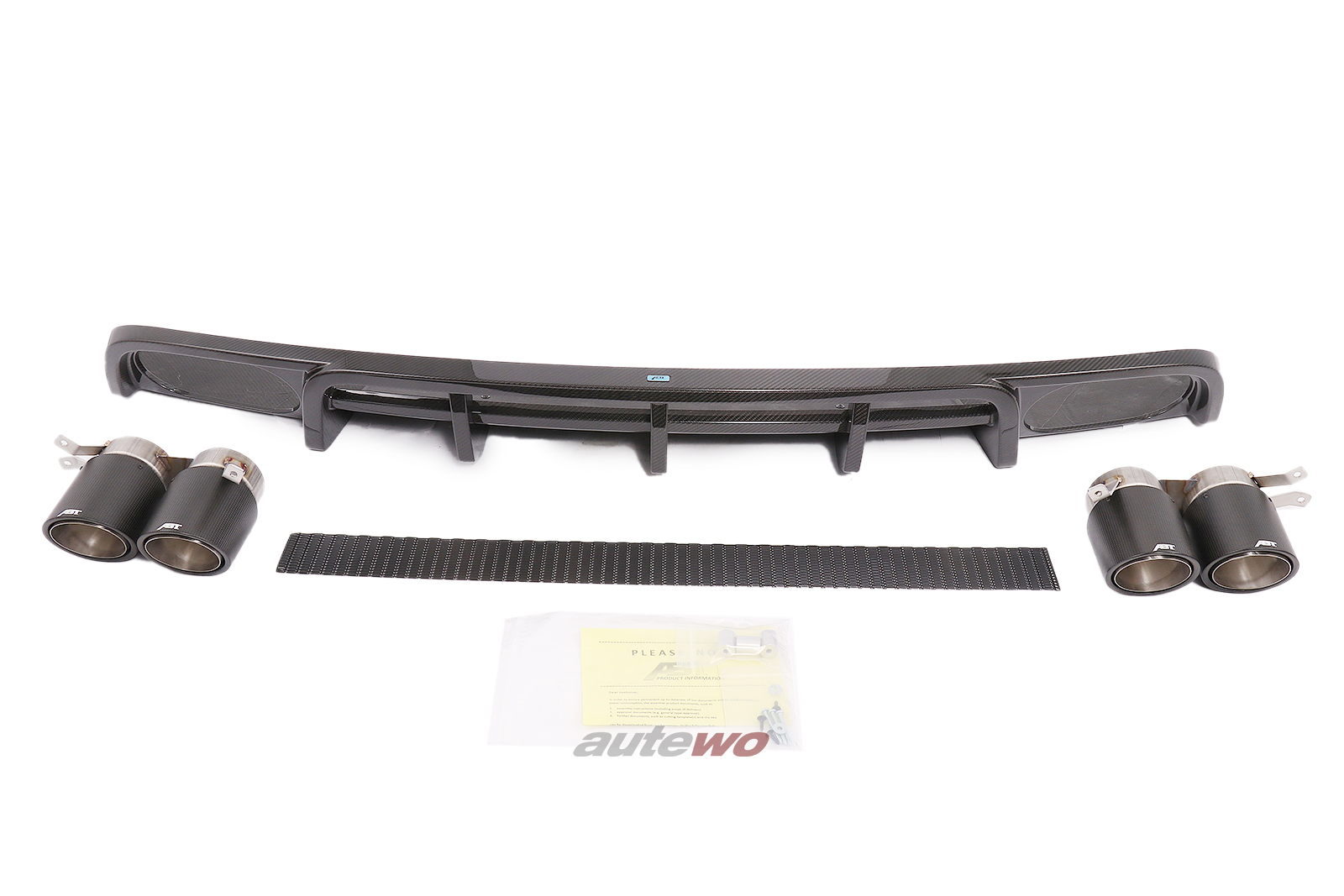 Nicht passend für: - Fahrzeuge mit Anhängerzugvorrichtung - Fahrzeuge mit serienmäßiger Schalldämpferanlage - Fahrzeuge mit sensorgesteuerter Heckklappe: Aufgrund der Materialzusammensetzung des ABT-Heckschürzenaufsatzes kann ein störungsfreier Betrieb der sensorgesteuerten Heckklappe (betrifft nur die Öffnung der Heckklappe durch Fußbewegung unterhalb der Heckschürze) nicht gewährleistet werden. In der Serie ist der Heckschürzeneinsatz aus Carbon ebenfalls nicht mit der sensorgesteuerten Heckklappe kombinierbar.
