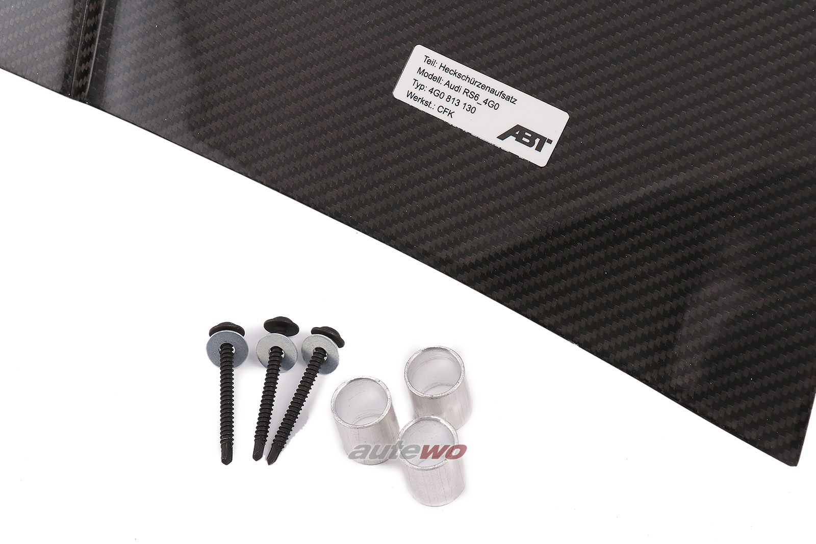 Material: Kohlefaserverstärkter Kunststoff (CFK) ---------------------------------------------------------------- Teilegutachten: 14-0134-00-02 ---------------------------------------------------------------- Verwendungsbereich: - Audi RS6_4G0 (Avant; MJ 2013) - Audi RS6_4G0 (Avant; ABT RS6-R; MJ 2014) - Audi RS6_4G05 (Avant, PA, MJ 2015) - Audi RS6_4G05 (Avant; PA, ABT RS6-R, MJ 2015) - Audi RS6_4G05 (Avant, PA, performance, MJ 2016)